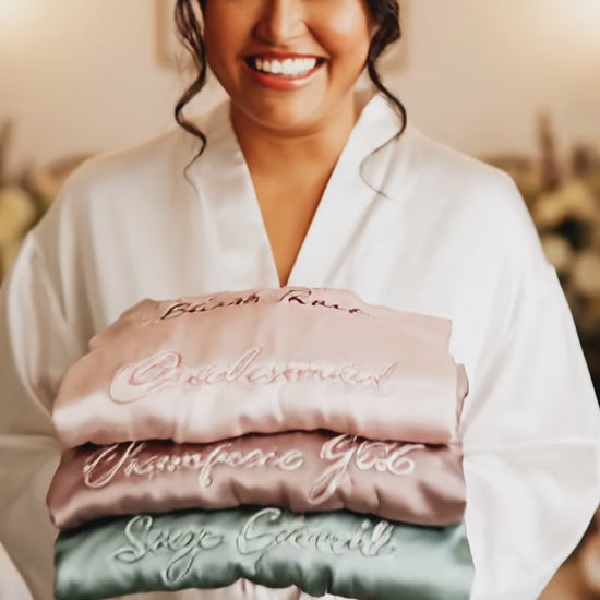 Watch how the robe flows, fits, and flatters from every angle - this is exactly what your bridal party will receive.